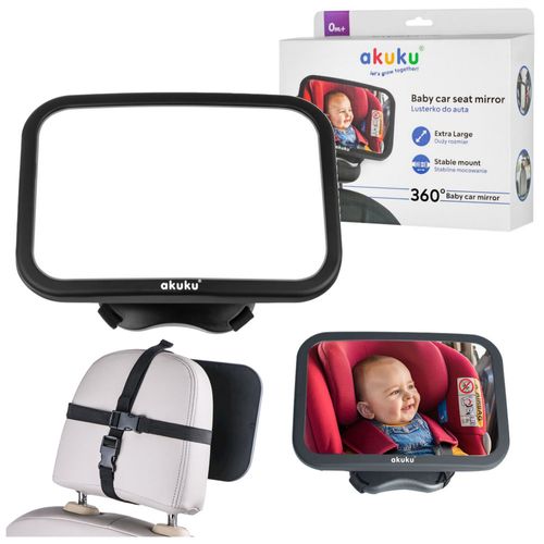 Lusterko marki „akuku” jest specjalnie zaprojektowane, aby rodzice mogli spokojnie sprawdzać co robi ich maluch w trakcie podróży autem. Lusterko umożliwia bezpieczną obserwację dziecka, które siedzi w foteliku tyłem do kierunku jazdy. Rodzic nie musi odwracać głowy i cały czas kontroluje drogę. Regulacja kata widzenia 360° - dostosuje lusterko do każdych potrzeb. Obraca się w każdym kierunku. Łatwe i bezpieczne mocowanie – Solidne regulowane paski łatwe w montażu zapewnią stabilność i bezpieczeństwo. To nie tylko lusterko – to bardzo ważne narzędzie, które zwiększa Twoje bezpieczeństwo i komfort podczas podróży z najważniejszą osobą w życiu! Ciesz się spokojem podczas każdej trasy!