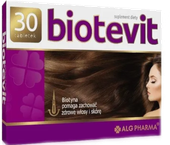 Suplement diety Alg Pharma Biotevit to produkt, który dostarcza biotyny wykazującej korzystne działanie na zdrowie. Preparat w postaci łatwych do połknięcia tabletek jest praktyczny i wygodny w stosowaniu.