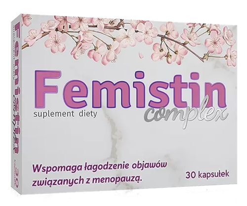 Alg Pharma Femistin Complex to suplement diety w formie kapsułek, dostarczany w opakowaniu zawierającym 30 sztuk. Produkt został specjalnie opracowany i dedykowany jest dla kobiet. Zawiera on ekstrakty roślinne, w tym wyciąg z szyszek chmielu i nasion lnu zwyczajnego, a także witaminy D, E i B6.