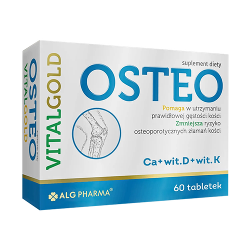 Podsumowując, suplement diety Produkt Alg Pharma OSTEO VitalGold oferuje innowacyjne połączenie wapnia, witaminy K i D3. Produkt dostępny w formie tabletek, co ułatwia jego stosowanie. Jest to wygodne rozwiązanie dla osób preferujących suplementację doustną. Każda tabletka została starannie opracowana, aby dostarczyć optymalną kombinację witaminy D, witaminy K2 i wapnia, które mogą wspierać zdrowie kości i układu kostnego.