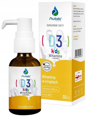 Avitale Witamina D3 KIDS jest doskonałym źródłem naturalnej witaminy D3 z lanoliny. Jej skład wpływa na prawidłowy wzrost i rozwój kości u dzieci, wspierając jednocześnie prawidłową budowę zębów.