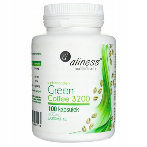 Aliness Green Coffee to wyjątkowy produkt, który wykorzystuje niesamowitą moc zielonej kawy. Każda kapsułka zawiera aż 800 mg ekstraktu z jej ziaren, zapewniając wysokie stężenie cennych składników aktywnych, takich jak kwas chlorogenowy i kofeina. To prawdziwa petarda na tłuszcz!