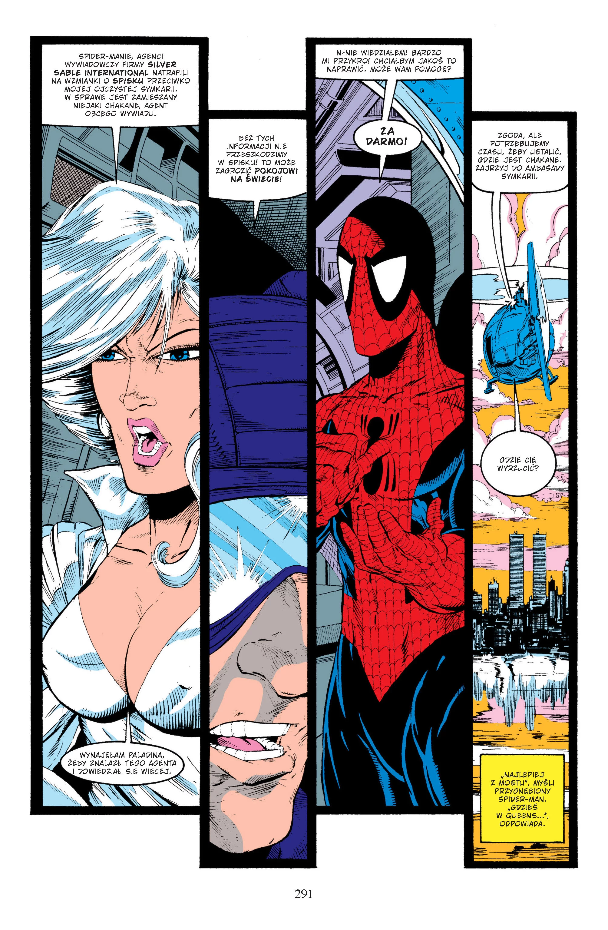 Mary Jane Watson i Peter Parker borykają się z kłopotami finansowymi i muszą nawet przeprowadzić się do pensjonatu cioci May. Tymczasem Spider-Man ma mnóstwo pracy… tyle że mało dochodowej. Zielony Goblin, Venom, Rhino, Lizard i Scorpion nie próżnują. Dodatkowo Spider-Man wplątuje się też w międzynarodową aferę po zamachu w Symkarii. Problem próbują rozwiązać również Silver Sable i Kapitan Ameryka. Czy ich współpraca przyniesie efekty? A na deser powieść graficzna „Życia równoległe”, która pokazuje relację Parkera i MJ w zupełnie nowym świetle. Scenariusze napisali Gerry Conway, Tom DeFalco, Fred Hembeck, David Michelinie i Peter Sanderson, a rysunki stworzyli Mark Bagley, Ron Frenz, Fred Hembeck, Erik Larsen, Rob Liefeld, Todd McFarlane, Richard Rockwell oraz Alex Saviuk. Album zawiera zeszyty „The Amazing Spider-Man” #311–325 i „Annual” #23 oraz powieść graficzną „Amazing Spider-Man: Parallel Lives”.