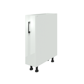 Korpus wykonany jest z płyty wiórowej laminowanej o grubości 18 mm z frontami z płyty MDF akryl biały połysk. Wewnątrz znajduje się jedna półka luźna. Korpus stoi na 4 nóżkach o regulowanej wysokości (w zakresie 9,5-16,5cm). Nóżki wykonane są z wytrzymałego tworzywa, mają one specjalny kształt umożliwiający jednoczesne podparcie boków i wieńca dolnego, co znakomicie poprawia wytrzymałość całej szafki. W zestawie dołączony jest kpl. klipsów umożliwiający montaż cokołu dolnego.