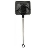 Teleskopowa siatka akwariowa o prostokątnym podbieraku. Siatka posiada drobne oczka, które przy wyławianiu nie stanowią dużego oporu dla wody.