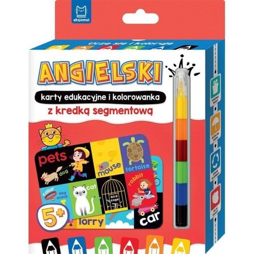 Pakiet kart ANGIELSKI i kolorowanka z kredką segmentową to doskonały sposób na rozwijanie spostrzegawczości i sprawności manualnej dziecka oraz naukę angielskich słówek poprzez zabawę.