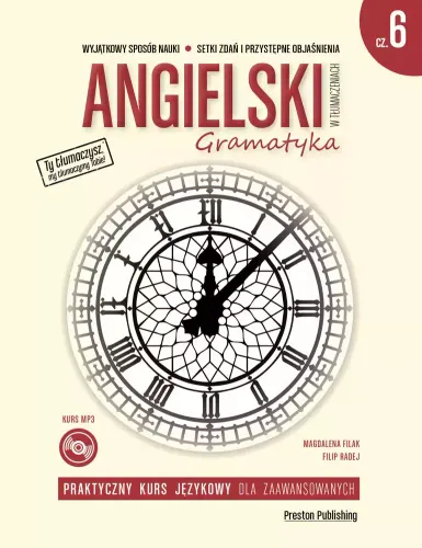 Szósta część kursu do praktycznej nauki języka angielskiego, która łączy w sobie naukę gramatyki oraz umiejętności mówienia na poziomie zaawansowanym. Drugie, poszerzone wydanie wzbogacone zostało o kolejne zagadnienia i kurs audio w dwóch wersjach językowych: polsko-angielskiej oraz angielskiej. Książka zawiera: • setki zdań i wyrażeń do tłumaczenia przydatnych na co dzień wraz z odpowiedziami, ułożonych według zagadnień gramatycznych, zgodnie ze stopniowaniem trudności, • czytelne wskazówki w języku polskim, ułatwiające zrozumienie zasad gramatycznych języka angielskiego, • płytę CD (mp3) z ponad 6-godzinnym kursem audio, pomagającym w utrwaleniu przyswojonej wiedzy, ćwiczeniu wymowy i poprawnego konstruowania zdań, • przystępny układ stron, który zmotywuje cię do codziennej nauki. Książka wymarzona dla samouków i wszystkich, którzy chcą sprawdzić swoje umiejętności językowe na poziomie zaawansowanym (C1-C2). Zawiera zagadnienia takie jak: • mieszane tryby warunkowe, • inwersję, • konstrukcje: unreal past, to+gerund, happen to, make it, have sth done, • spójniki, • gerund/infinitive, • mowę zależną i stronę bierną, • tryb subjunctive. Jest to idealny suplement do regularnej nauki języka angielskiego oraz pomoc w przygotowaniu się do egzaminów. W prosty i jasny sposób przekazuje wiedzę na temat konstrukcji gramatycznych i zachęca do ćwiczeń. To także doskonały materiał wspomagający naukę zarówno dla nauczyciela, jak i dla ucznia.Szósta część kursu do praktycznej nauki języka angielskiego, która łączy w sobie naukę gramatyki oraz umiejętności mówienia na poziomie zaawansowanym. Drugie, poszerzone wydanie wzbogacone zostało o kolejne zagadnienia i kurs audio w dwóch wersjach językowych: polsko-angielskiej oraz angielskiej. Książka zawiera: • setki zdań i wyrażeń do tłumaczenia przydatnych na co dzień wraz z odpowiedziami, ułożonych według zagadnień gramatycznych, zgodnie ze stopniowaniem trudności, • czytelne wskazówki w języku polskim, ułatwiające zrozumienie zasad gramatycznych języka angielskiego, • płytę CD (mp3) z ponad 6-godzinnym kursem audio, pomagającym w utrwaleniu przyswojonej wiedzy, ćwiczeniu wymowy i poprawnego konstruowania zdań, • przystępny układ stron, który zmotywuje cię do codziennej nauki. Książka wymarzona dla samouków i wszystkich, którzy chcą sprawdzić swoje umiejętności językowe na poziomie zaawansowanym (C1-C2). Zawiera zagadnienia takie jak: • mieszane tryby warunkowe, • inwersję, • konstrukcje: unreal past, to+gerund, happen to, make it, have sth done, • spójniki, • gerund/infinitive, • mowę zależną i stronę bierną, • tryb subjunctive. Jest to idealny suplement do regularnej nauki języka angielskiego oraz pomoc w przygotowaniu się do egzaminów. W prosty i jasny sposób przekazuje wiedzę na temat konstrukcji gramatycznych i zachęca do ćwiczeń. To także doskonały materiał wspomagający naukę zarówno dla nauczyciela, jak i dla ucznia. Nowe wydanie zostało wzbogacone o testy sprawdzające i glosariusze.