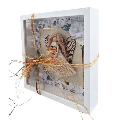 Dzięki głębokości ramki wynoszącej 6 cm, możesz być pewien, że aniołek nie zostanie przypadkowo uszkodzony. Szkło dodatkowo chroni makramę, zachowując jej piękno na długie lata.