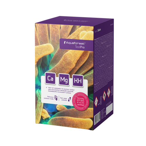 Zestaw testów kropelkowych do określania poziomów najważniejszych parametrów takich jak Ca, KH oraz Mg.