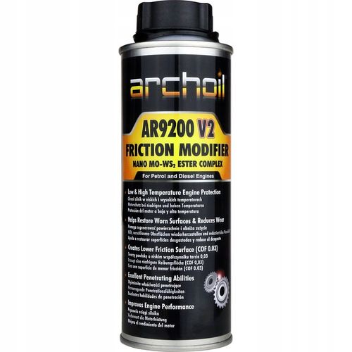 ARCHOIL AR9200 v2 to innowacyjny modyfikator tarcia, wykorzystujący najnowszą syntetyczną technologię estrową z dodatkiem molibdenu i nano dwusiarczku wolframu (Mo-WS2). Zapewnia zaawansowaną ochronę przeciwzużyciową oraz znaczącą redukcję tarcia w silnikach benzynowych i wysokoprężnych, zarówno w pojazdach wyczynowych, jak i tych codziennego użytku.