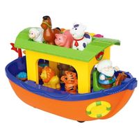 Wspaniała arka Noego zawiera 9 zwierzątek, które nagrodzą dzieci realistycznymi odgłosami bądź zabawną rymowanką za każdym razem, kiedy odgadną prawidłowy kształt i włożą je w odpowiednie miejsce. Ster arki po przekręceniu wydaje realistyczne dźwięki. Zabawka posiada kolorowe mini pianinko, na którym można zagrać własną kompozycję. Istnieje możliwość doczepienia sznureczka do arki za pomocą którego może być prowadzona przez maluszka. Arka podczas jazdy imituje ruchy „płynącej na falach łodzi".