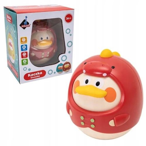Sensoryczna zabawka - kiwająca kaczuszka, która nigdy się nie przewraca. Pomaga w rozwoju koordynacji ruchowej oraz zmysłów wzroku, dotyku i słuchu. Kołysząc się na wszystkie strony, rusza buzią i wydaje odgłosy dzwoneczków, przez co doskonale stymuluje i rozwija koordynację ruchowo-wzrokowo-słuchową. Zabawka wczesnorozwojowa, już na tym etapie zachęcająca do aktywności podczas leżenia na brzuszku, wyciągania rączek, podnoszenia główki.