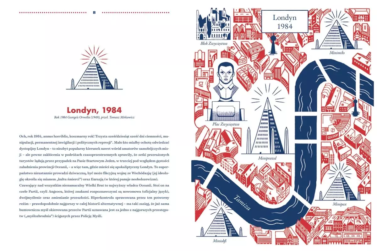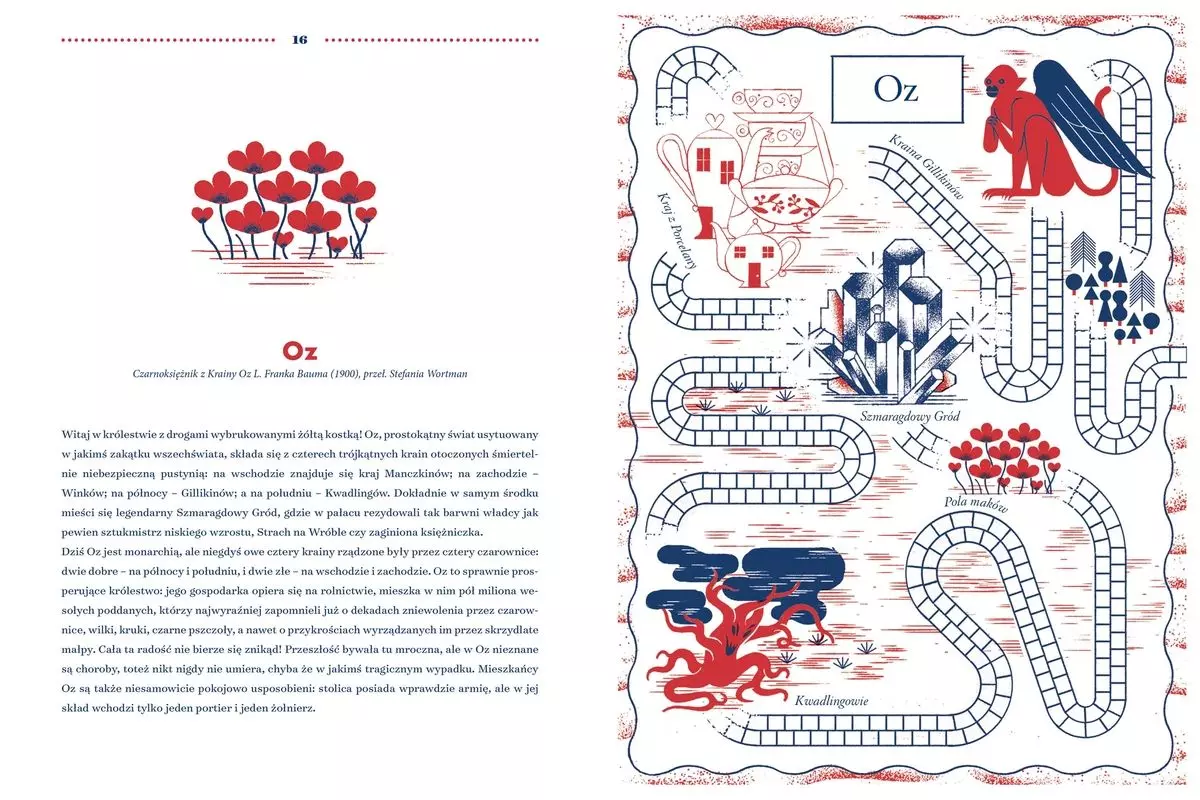 Znacie wszystkie tajne przejścia w Hogwarcie? Każdy zakątek królestwa Narnii? Wiecie, jak smakują lizaki z fabryki czekolady pana Wonki? Piliście herbatę z Kapelusznikiem? A może wolicie posiedzieć przy kominku w londyńskim mieszkaniu Sherlocka Holmesa albo pospacerować po papierowych miastach, których nie ma na żadnych mapach? Przed wami wyprawy w przeszłość, do światów równoległych, w głąb przestrzeni kosmicznej, do baśniowych miejsc, które możecie przemierzać na grzbietach niesamowitych istot. Ten ilustrowany atlas, pełen szczegółów, anegdot i ciekawostek, będzie waszym najlepszym przewodnikiem po światach, które zafascynowały was, gdy czytaliście ulubione powieści. I sami się przekonacie: wcale nie będzie wam się chciało z tych podróży wracać.