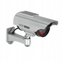 Urządzenie o realistycznym wyglądzie kamery monitorującej z migającą diodą LED, zasilaną panelem solarnym.