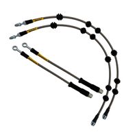 W skład zestawu wchodzą cztery przewody hamulcowe elastyczne teflonowe w oplocie stalowym.