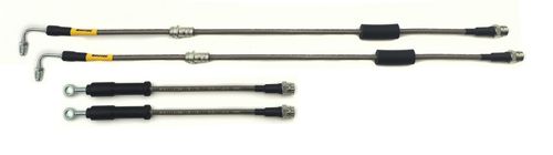 Zestaw przewodów hamulcowych elastycznych wykonany na bazie węża teflonowego w oplocie stalowym.