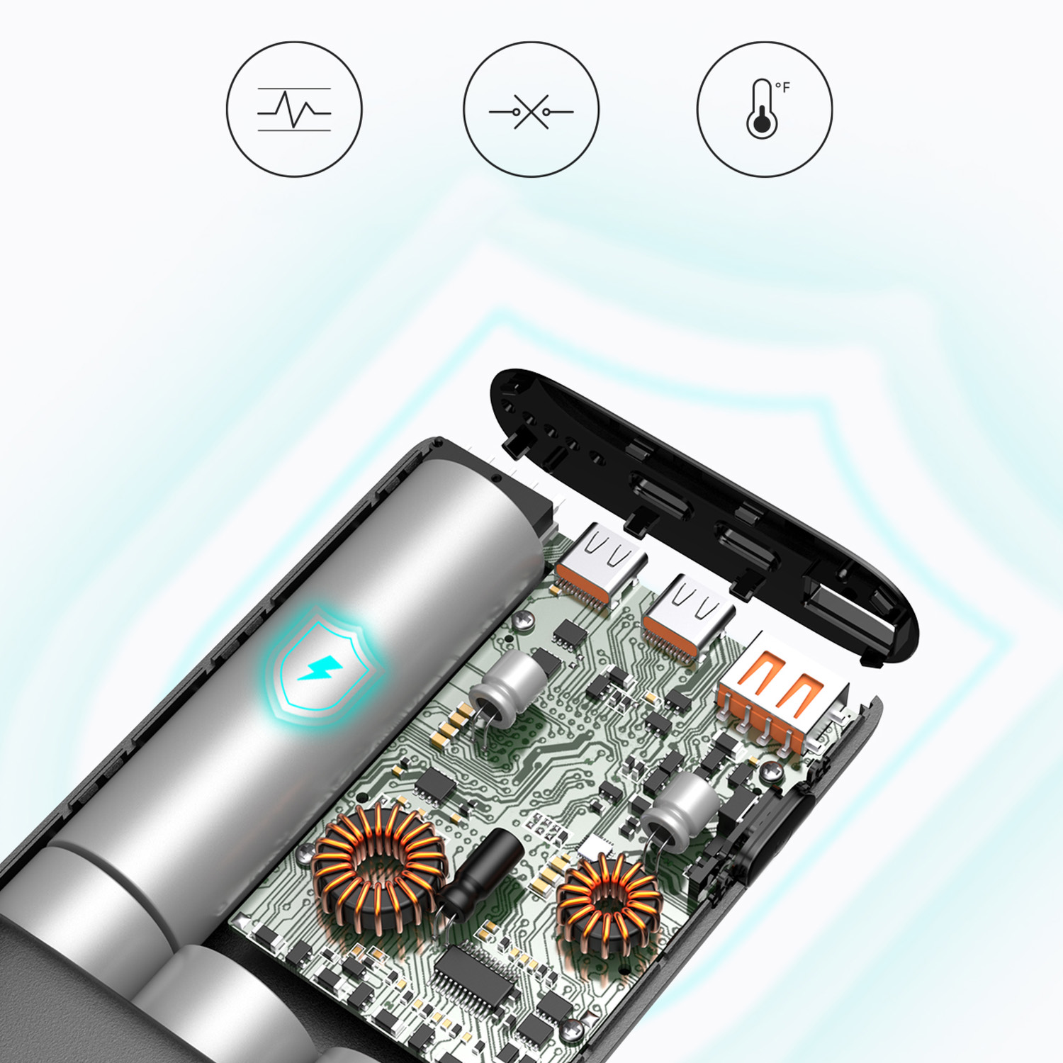 Powerbank 20 000 mAh Aukey posiada zabezpieczenia antyprzepięciowe, antyzwarciowe, a także zabezpieczenie chroniące urządzenie przed przegrzaniem. To bezpieczny sprzęt, którego można używać bez obaw!