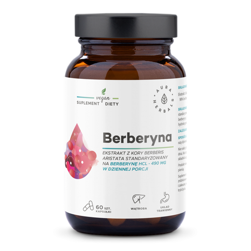 Suplement diety Aura Herbals Berberyna to wysokiej jakości produkt, dostarczający ekstraktu z Berberis aristata standaryzowanego na zawartość berberyny. Produkt ten ma postać roślinnych, wegańskich kapsułek oraz posiada prosty, czysty skład, bez zbędnych i sztucznych dodatków, konserwantów i ulepszaczy.