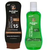 Wzbogać swoje wakacyjne doświadczenia! Wybierz Australian Gold Balsam Do Opalania SPF15 oraz Soothing Aloe Po Opalaniu i ciesz się cudowną, naturalnie wyglądającą opalenizną oraz zdrową skórą!