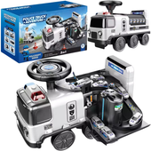 Jeździk - pojazd policyjny: Ten pojazd policyjny pełni kilka różnych funkcji, umożliwiając dziecku różnorodną zabawę. Może być wykorzystywany jako jeździk, który pozwoli dziecku jeździć po różnych powierzchniach, zapewniając bezpieczną i ekscytującą zabawę w ruchu. Dodatkowo, siedzisko rozkłada się, ukazując niesamowity tor samochodowy, a 4 autka w zestawie pozwalają na radosną zabawę. Zabawka jest doskonałym sposobem na różnorodną zabawę, która zapewnia wiele radosnych chwil.