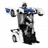 Innowacyjna konstrukcja łącząca funkcjonalność samochodu zdalnie sterowanego w skali 1:18 z pełnowymiarowym robotem. Jednym naciśnięciem przycisku dokonuje się spektakularna przemiana, która zachwyca każdego użytkownika. Automatyczna transformacja sterowana pilotem zapewnia płynne i bezawaryjne przejście między trybami.