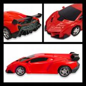 Produkt wykonany zgodnie z rygorystycznymi normami bezpieczeństwa EN-71 i CE, wyposażony w trwałe gumowe opony oraz solidną konstrukcję z błyszczącym lakierem. Piękna linia nadwozia o wyścigowym charakterze połączona z precyzyjnym mechanizmem transformacji gwarantuje długotrwałą i bezpieczną zabawę.