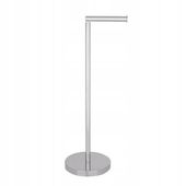 Stojak oferuje nie tylko uchwyt na rolkę w użyciu, ale także centralny drążek na 4 zapasowe rolki, co gwarantuje stały dostęp bez zbędnego uzupełniania. Ta przemyślana konstrukcja zapewnia płynność i wygodę, czyniąc przestrzeń łazienki bardziej zorganizowaną i przyjazną dla użytkownika.