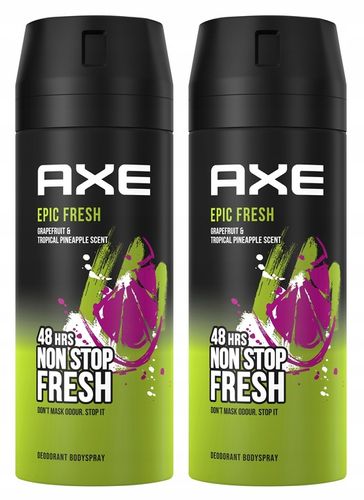 AXE Epic Fresh Body dezodorant 2x150 ml DEO to idealne rozwiązanie dla mężczyzn, którzy pragną poczuć się świeżo i pewnie przez cały dzień! Wyposażony w innowacyjną formułę, ten dezodorant zapewnia niezrównaną ochronę przed nieprzyjemnym zapachem, gwarantując przedłużoną świeżość aż do 48 godzin!