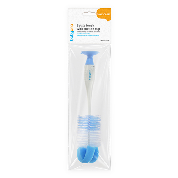 Szczotka z przyssawką „SAMOSTOJĄCA” pomaga w dokładnym czyszczeniu zarówno butelki, jak i smoczka. Szczotka posiada przyssawkę, która umożliwia przyczepienie jej do płaskich powierzchni, dla ułatwienia osychania. Szczotka do butelki jest zakończona miękką gąbką, która dostosowuje się do kształtu butelki.