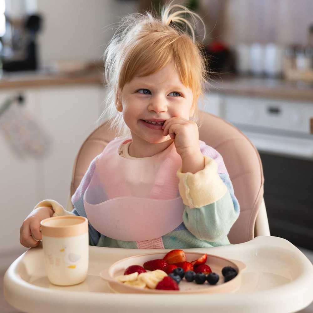 Nauka picia z otwartego kubka wspiera naturalny rozwój dziecka. Poprawia koordynację ręka–oko, wzmacnia mięśnie twarzy i jamy ustnej, a mniejszy kontakt napoju z zębami pomaga chronić przed próchnicą. Specjaliści zalecają ten sposób picia jako ważny element rozwoju mowy i zdrowych nawyków.