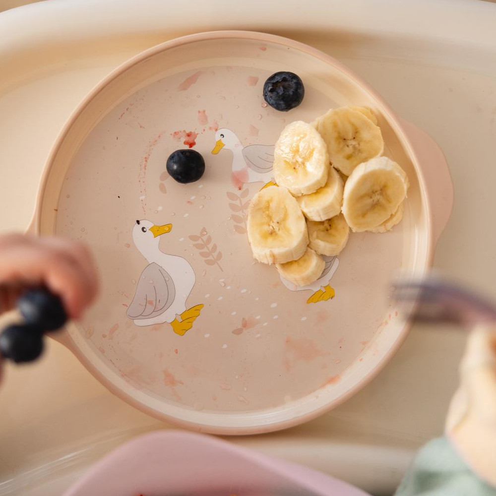 Zaokrąglone kształty naczyń są idealnie dopasowane do małych rączek i bezpieczne dla delikatnych ust oraz dziąseł dziecka.