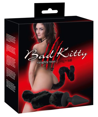 Czarny korek analny wykonany z bezpiecznego materiału. Do korka przyczepiony jest puszysty, futerkowy ogon.