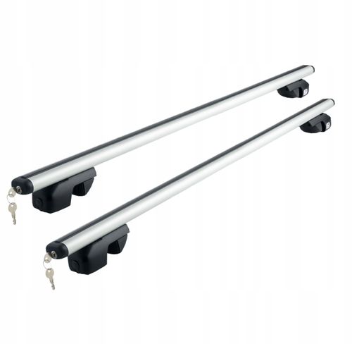 Prezentowany bagażnik składa się z solidnych łap mocujących, wykonanych z tworzywa sztucznego oraz z dwóch aluminiowych belek z zamkami o aerodynamicznym kształcie i przekroju 53x30mm. Łapy mocujące posiadają dodatkowe zabezpieczenie przed kradzieżą - do ich zamknięcia służy nietypowa śruba (otwór zakończony wieczkiem). Miejsce ścisku na relingu wyłożone gumą. Całość zestawu w uniwersalnym, czarno-srebrnym kolorze. Bagażniki samochodowe polecamy szczególnie tym kierowcom, którzy chcą zwiększyć przestrzeń bagażową w samochodzie. Nasz bagażnik pozwala na montaż dodatkowych akcesoriów (poprzez obejmę lub wsuwkę w kształcie T w górnej szczelinie belki) - uchwytów rowerowych, narciarskich, boxów i innych dodatków. Prosty montaż - odbywa się poprzez założenie uchwytów mocujących do aluminiowych belek (do dolnej szczeliny w belce). Zmontowaną całość (belki plus uchwyty) zakładamy na relingi w aucie.
