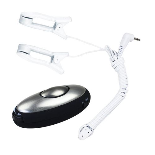 Zestaw zawiera ręczny zasilacz do sterowania stymulacją elektryczną, z parą zacisków na sutki, które są połączone przewodem