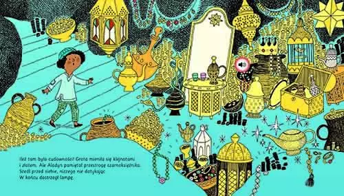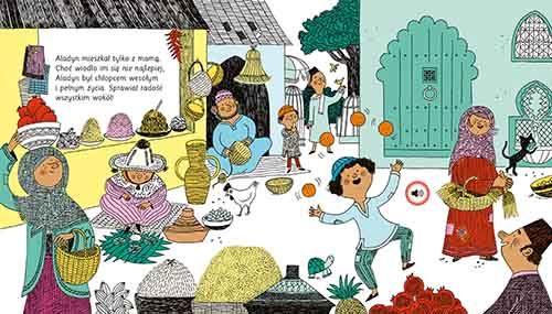Przepięknie zilustrowana bajka z 16 różnymi modułami dźwiękowymi, która uruchamia wyobraźnię. Naciskaj ukryte na ilustracjach nutki i posłuchaj, jaki gwar panuje na arabskim targu; jak cieszy się uwolniony z lampy Aladyn; jak śmieje się czarnoksiężnik i krzyczy papuga. Aladyn. Bajka dźwiękowa w przekładzie Pawła Pawlaka to unikalne połączenie książki i słuchowiska, jakiego na rynku dotąd nie było. Melodie i odgłosy zostały specjalnie skomponowane do tej bajki i nagrane przy pomocy aktorów, muzyków i prawdziwych instrumentów. Dźwięki tworzą trzeci wymiar – wzbogacają opowieść i pomagają rozwijać wyobraźnię. Dzięki znakomitym aranżacjom podobają się także dorosłym. Pierwsze na rynku polskim bajki dźwiękowe z cienkimi stronami. Klasyczne bajki z najwyższej półki ilustrowane przez najlepszych francuskich ilustratorów. Dźwięki dopełniają i ożywiają opowieść, są na każdej stronie, tworzą niezwykły klimat. Bajki przetłumaczyli znani polscy pisarze, m.in.: Justyna Bednarek, Emilia Kiereś, Paweł Pawlak. Seria „Bajki dźwiękowe” otrzymała Nagrodę Rodziców 2021 w XV edycji konkursu organizowanym przez portal zabawkowicz.pl.