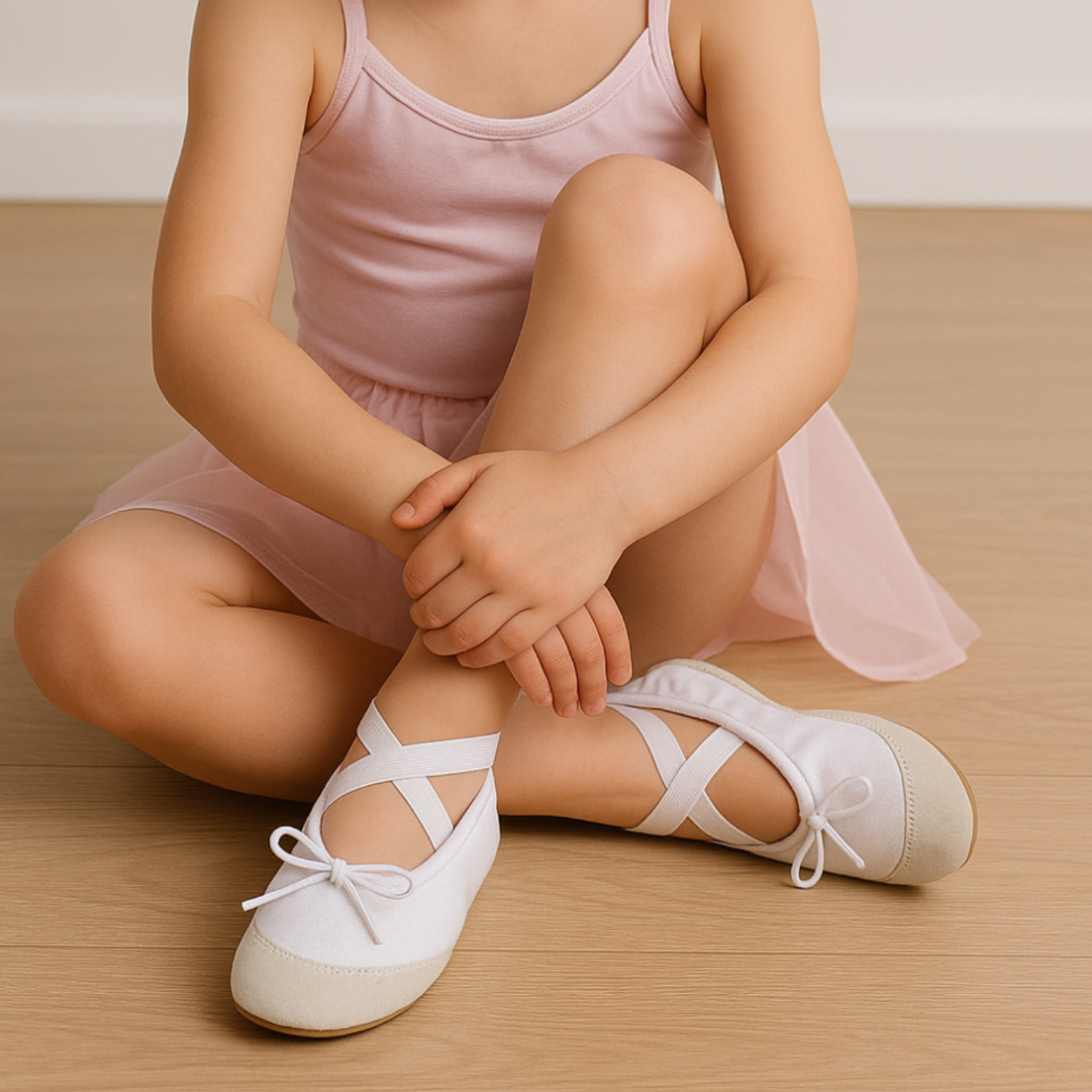 Oferujemy baletki taneczne płócienne w kolorze białym – lekkie i wygodne buty do tańca, które gwarantują komfort oraz bezpieczeństwo podczas ćwiczeń. Podeszwa wykonana została ze skóry bydlęcej, co zapewnia miękkość i chroni przed ślizganiem się na parkiecie.