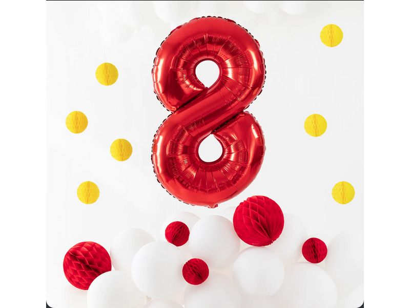 Balon foliowy "cyfra 8" o kolorze czerwonym. Balon foliowy liczba jest wielkości aż ok. 100 cm. Duże cyfry nadają się idealnie na każde urodziny lub rocznicę, którą obchodzisz wspólnie z bliską Tobie osobą.