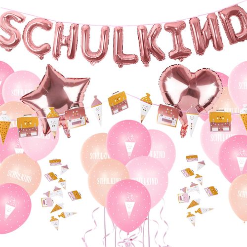 Kompleksowy zestaw dekoracyjny o nazwie Pierwszy Dzień Szkoły to idealny sposób na radosne powitanie małej uczennicy w nowym roku szkolnym. Pakiet zawiera aż 49 starannie dobranych elementów, które pozwalają zamienić domowe zacisze lub salę lekcyjną w kolorową krainę pełną uśmiechu. Dominująca kolorystyka różowego złota, łososia i pastelowego różu sprawia, że oprawa wizualna jest niezwykle estetyczna oraz zgodna z aktualnymi trendami dekoratorskimi. Wysoka jakość materiałów i precyzyjne wykonanie zapewniają trwałość ozdób przez cały czas trwania uroczystości, tworząc przyjazną atmosferę w tym ważnym dniu.