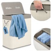 Ten bambusowy kosz na pranie 2-komorowy o pojemności 100 l wyróżnia się naturalnym, trwałym materiałem i przemyślaną konstrukcją, która ułatwia codzienne życie. Dwie oddzielne komory pozwalają na natychmiastową segregację jasnego i ciemnego prania, oszczędzając Twój czas i utrzymując porządek bez wysiłku.