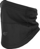 Uniwersalna bandana marki 4F w kolorze czarnym. Wewnętrzna strona jest koloru jasno różowego. Przednia dolna część bandany wykonana jest z materiału softshell. Idealnie zabezpiecza przed nieprzyjemnymi warunkami atmosferycznymi, takimi jak wiatr czy kurz. Ściągacz ze stoperem umożliwi idealne dopasowanie. Może być stosowana na wiele sposobów np. jako komin, pół kominiarka, maska czy też opaska. Komin idealnie sprawdzi się podczas wędrówek turystycznych w chłodniejsze dni. Podszycie z miękkiego materiału zapewni komfort użytkowania.
