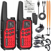 Możliwość zasilania akumulatorem lub zwykłymi bateriami AA zapewnia nieograniczoną mobilność. Funkcje takie jak skanowanie kanałów, VOX, sygnalizacja niskiego poziomu baterii i blokada klawiatury czynią te krótkofalówki niezwykle przyjaznymi w użyciu i dopasowanymi do Twoich indywidualnych potrzeb.