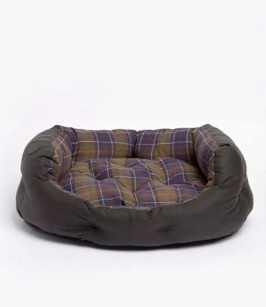 Legowisko dla psa Barbour Dogs, woskowane/bawełniane, 30 cali, oliwkowozielone. To legowisko dla psa posiada zewnętrzną tkaninę z woskowanej bawełny i wewnętrzną podszewkę z bawełny w klasyczny wzór tartanu Barbour. Wysokie boki zapewniają Twojemu pupilowi przytulność i bezpieczeństwo, a niższy przód ułatwia dostęp. Poduszka jest wyjmowana i nadaje się do prania. Wymiary: wysokość 30 cm x szerokość 76 cm x głębokość 64 cm. Wytłoczone logo. Idealne miejsce do odpoczynku dla Twojego pupila.