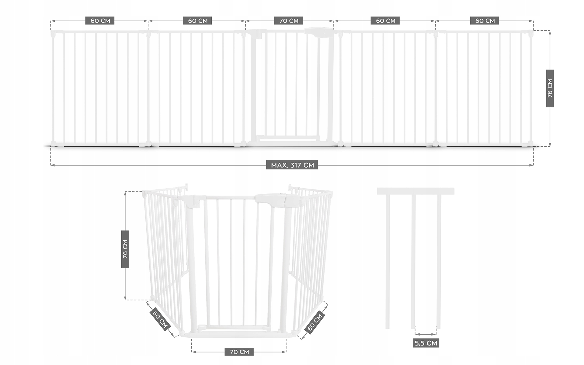 Guardian 6.0 to nie tylko barierka, ale także innowacyjny kojec, który możesz dostosować do aktualnych potrzeb. Dzięki możliwości ustawienia barierki w różnych konfiguracjach, skutecznie zabezpieczysz schody czy kominek, dając dziecku oraz zwierzakowi przestrzeń do zabawy, bez obaw o ich bezpieczeństwo.