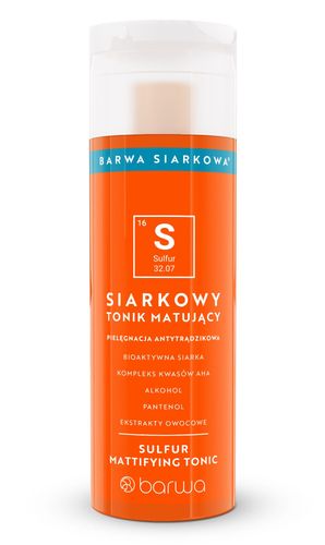 Skład:(INCI) Alcohol Denat., Glycerin, Panthenol, Propylene Glycol, PEG-40 Hydrogenated Castor Oil, Sulfur, Lactic Acid, Glycolic Acid, Citric Acid, Citrus Aurantium Dulcis Fruit Extract, Malic Acid, Tartaric Acid, Saccharum Officinarum Extract, Acer Saccharum Extract, Vaccinium Myrtillus Fruit Extract, Citrus Limon Fruit Extract, PEG-30 Castor Oil, Tetrasodium EDTA, Sodium Benzoate, Potassium Sorbate, Parfum, Citral, Limonene, Linalool, CI 15985.