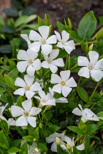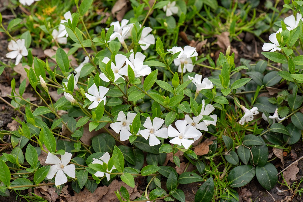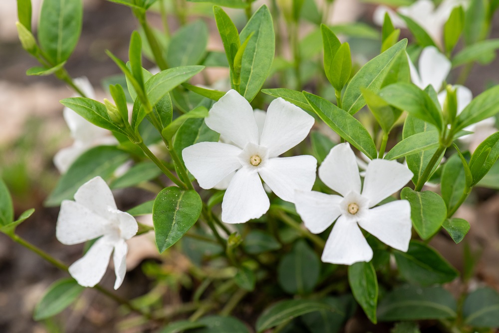 Odmiana barwinka Elisa to wyjątkowa roślina, która zachwyca drobnymi, pięciopłatkowymi, płasko rozpostartymi kwiatami o czystej, białej barwie, osiągającymi średnicę około 2,5-3 cm. Jej ciemnozielone, eliptyczne liście, o skórzastej i błyszczącej powierzchni, są naprzeciwległe i mierzą około 3 cm długości. Silnie rozrastające się pędy tej rośliny sprawiają, że zakwita w obfity sposób, idealnie pokrywając zacienione zakątki ogrodu swoimi efektownymi kwiatami.
