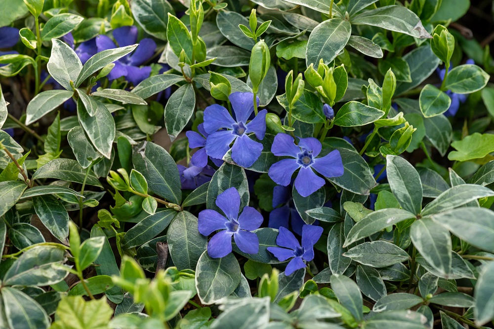 Barwinek 'Ralph Shugart' to wyjątkowa, zimozielona krzewinka, która zdobi każdego ogrodu swoimi efektownymi, niebieskimi kwiatami. Charakteryzuje się niskim wzrostem oraz pędami, które ścielą się po ziemi, tworząc gęste kobierce.
