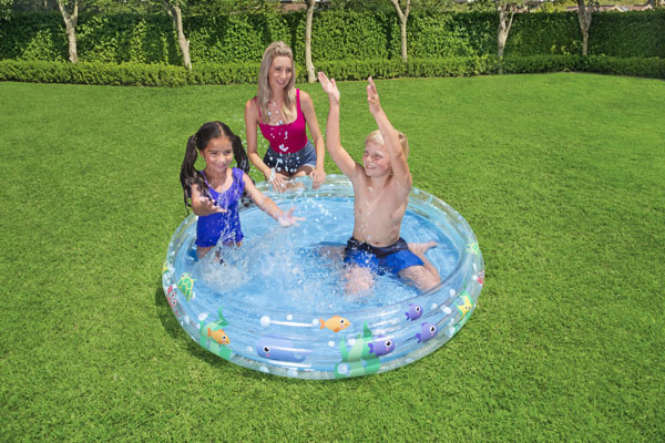Dmuchany basen ogrodowy to najlepszy wybór dla najmłodszych. Ciekawa kolorystyka i kolorowy nadruk z motywem rybek zachwycą nie tylko dzieci, ale także rodziców. Trzy pierścienie powietrzne sprawiają, że basen jest stabilny i wyjątkowo łatwy w użyciu – bez problemu go napompujesz i spuścisz powietrze. Mocny materiał, odporny na przetarcia i działanie promieni UV, z którego jest wykonany basen sprawi, że będziesz mógł cieszyć się nim przez wiele sezonów.