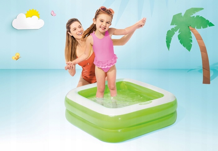 Kwadratowy basenik z dmuchanymi, miękkimi ścianami i podłogą to sposób dla najmłodszych na ochłodę w upalne letnie dni. Piękne kolory i przyjemny materiał sprawią, że basen stanie się ulubionym miejscem zabaw dla każdego dziecka.