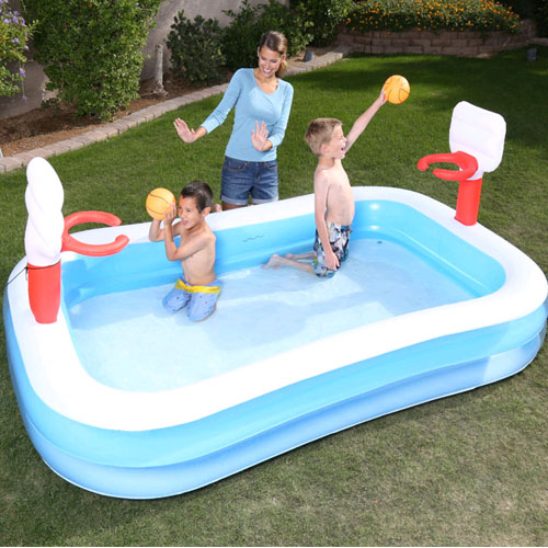 Najprawdziwszy basen dmuchany do uprawiania koszykówki w wodzie to coś, co pokochają nie tylko Twoje dzieci, ale z pewnością pokochasz także i Ty. Można sobie porządnie popływać, a co najważniejsze pograć w koszykówkę i to we własnym ogrodzie.