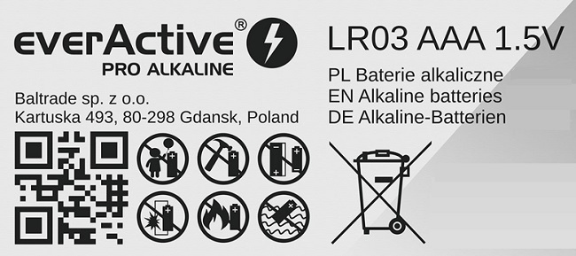 Baterie z aktualnej produkcji - prosto od cenionego producenta everActive z bardzo długą datą ważności (do 10 lat od daty produkcji).